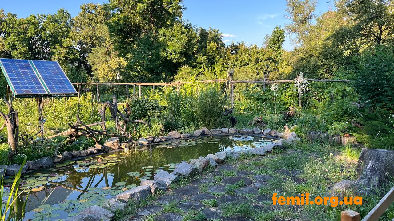 Загалом турбаза для еко відпочинку: можна взяти у оренду байдарки, дошки, усіляке водне приладдя. Також тут є свійські тварини, які стали для доньки міні-зоопарком. Є майданчик для спорту, для дітей – батут, гойдалки. Крім того здаються будиночки. Електроенергія від сонячних панелей, тож кондиціонерів у них, наче, немає. Але горяча вода у послугах заявлена. Ми на день приїжджали і не вибагливі, тож умов умовно вистачало.